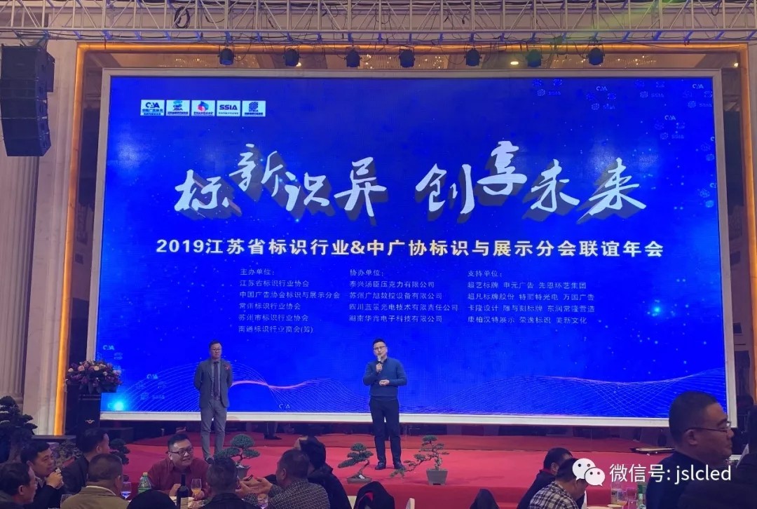 On November 28, 2019, Thanksgiving Day, the Jiangsu logo Industry & China Guangzhou logo and Exhibition Branch Association annual meeting was held in Nantong Putian Tongqing hotel. Jointly sponsored by Jiangsu logo Industry Association, China Advertising Association logo and advertising branch, Suzhou logo Industry Association, Changzhou logo Industry Association and Nantong logo Industry Association (Preparatory), it is a grand event for the whole Jiangsu logo people.