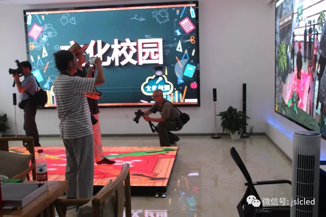 隨后,在章總的帶領下,向科普愛好者一一介紹了產品。體驗中心的AR互動屏、地磚互動屏等智能LED產品讓科普創作愛好者興趣濃厚并親身體驗。科技引領創新,江蘇亮彩在深耕LED產業的同時,用科技和設計重塑光顯文化。正如,十九大報告指出“文化興國運興,文化強民族強”。